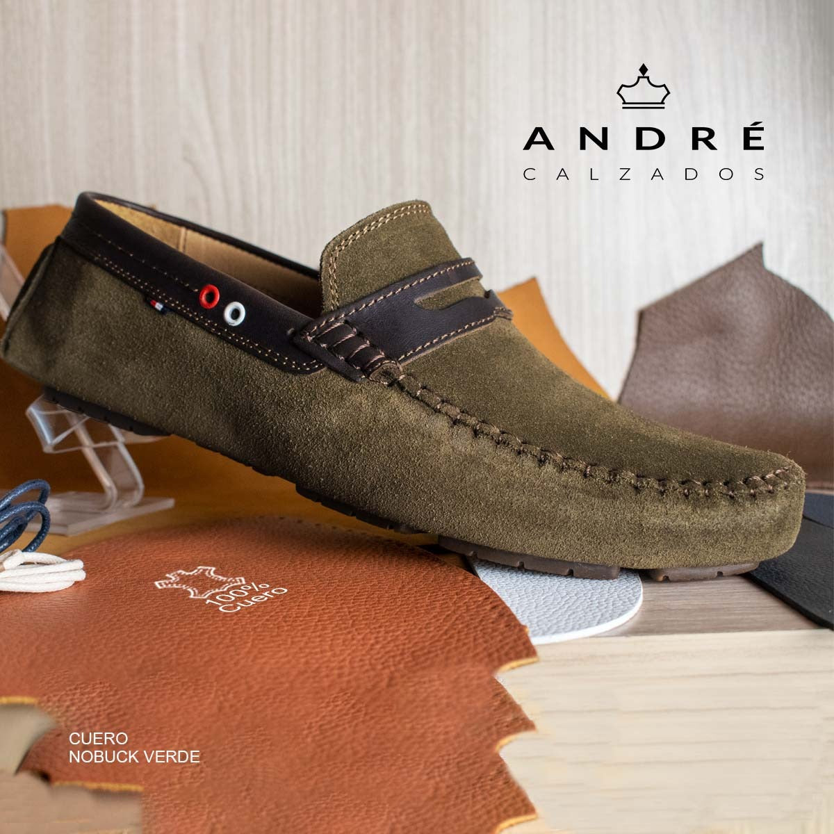 TIPO DE CUERO: CUERO NOBUCK. Suave, flexible y transpirable. CUERO OLIVA